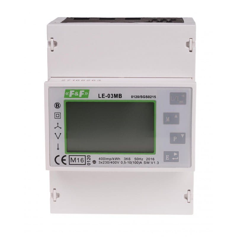 Trójfazowy licznik zużycia energii czynnej i biernej, m-bus, 100(5)a, mid LE-03MB o numerze katalogowym LE-03MB w kategorii Pozostała aparatura pomiarowa, Aparatura kontrolno-pomiarowa. Produkt wyprodukowany przez markę F&F.