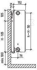 - Wyposażenie (zestaw): osłony boczne i osłona górna typu „grill”, system mocowań ściennych, zaślepka zaworu, odpowietrznik oraz odpływ