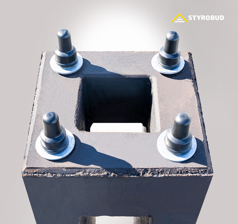 Fundament D22/150 (1500/340) 4xM24/220/S60/4PP4PS4N/AB/K o numerze katalogowym FUNDAM000196 w kategorii Fundamenty i mocowania, Słupy oświetleniowe. Produkt wyprodukowany przez markę STYROBUD.