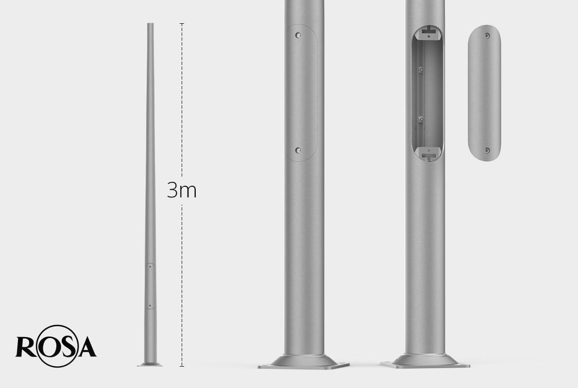 Słup aluminiowy SAL-3M anodowany inox C45 o numerze katalogowym 42120/C45 w kategorii Słupy aluminiowe + wysięgniki, Słupy oświetleniowe. Produkt wyprodukowany przez markę ROSA, seria SAL.